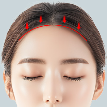 헤어라인을 따라 절개선을 정한 뒤에 이마의 피부를 절개하고 두피를 앞으로 당겨 이마의 넓이를 축소하는 수술입니다.