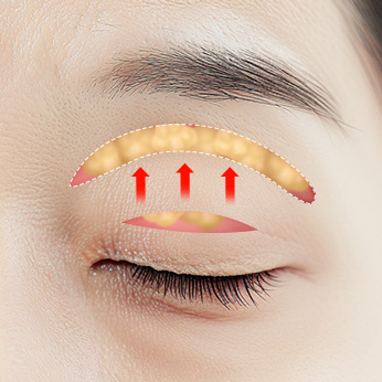 나이가 들면서 지방이 불규칙하게 배열되어 힘없이 처지던 눈꺼풀 탄력을 회복시켜 줍니다.