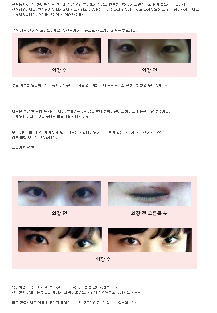 안검하수, 앞트임 후기